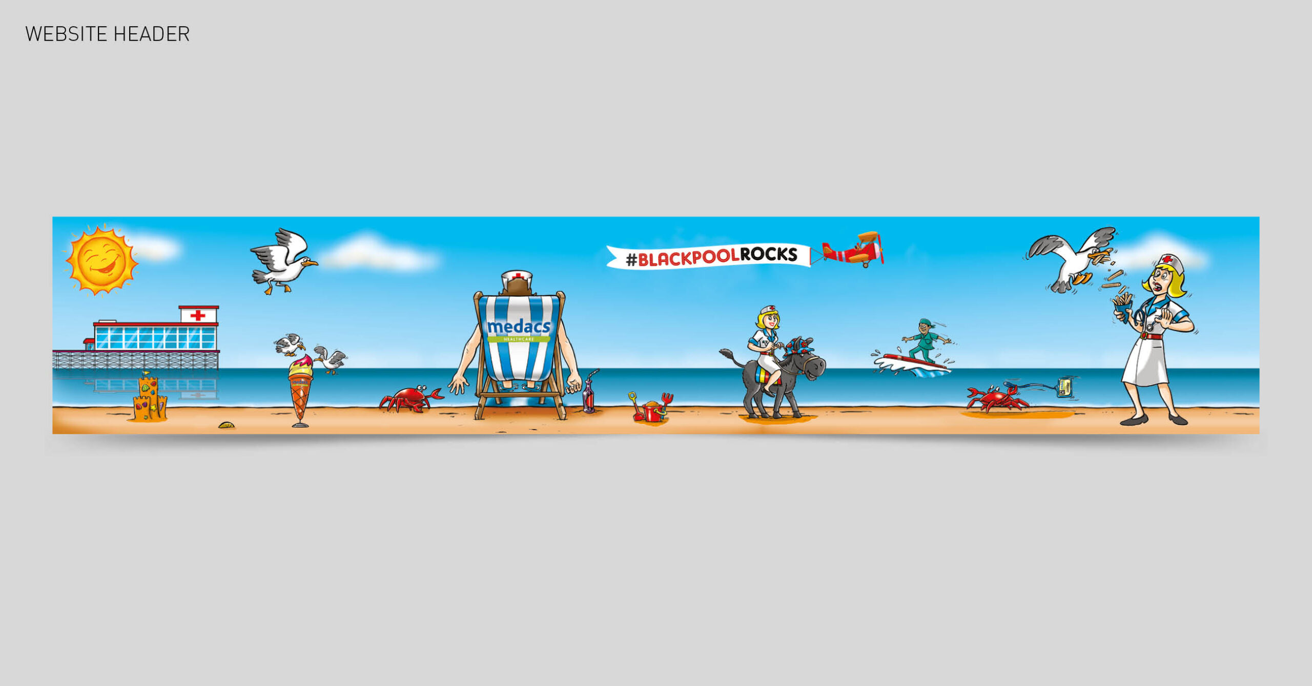 Our freehand illustrators and designers created a series of fun images, in a style never before used by the company, to help drive the marketing campaign, leading it to become the most successful recruitment drive ever run by Medacs.